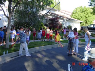 | It was well after dark when the party broke up and people took their children home. Everyone is looking forward to our next event, the outdoor movie night in August. |